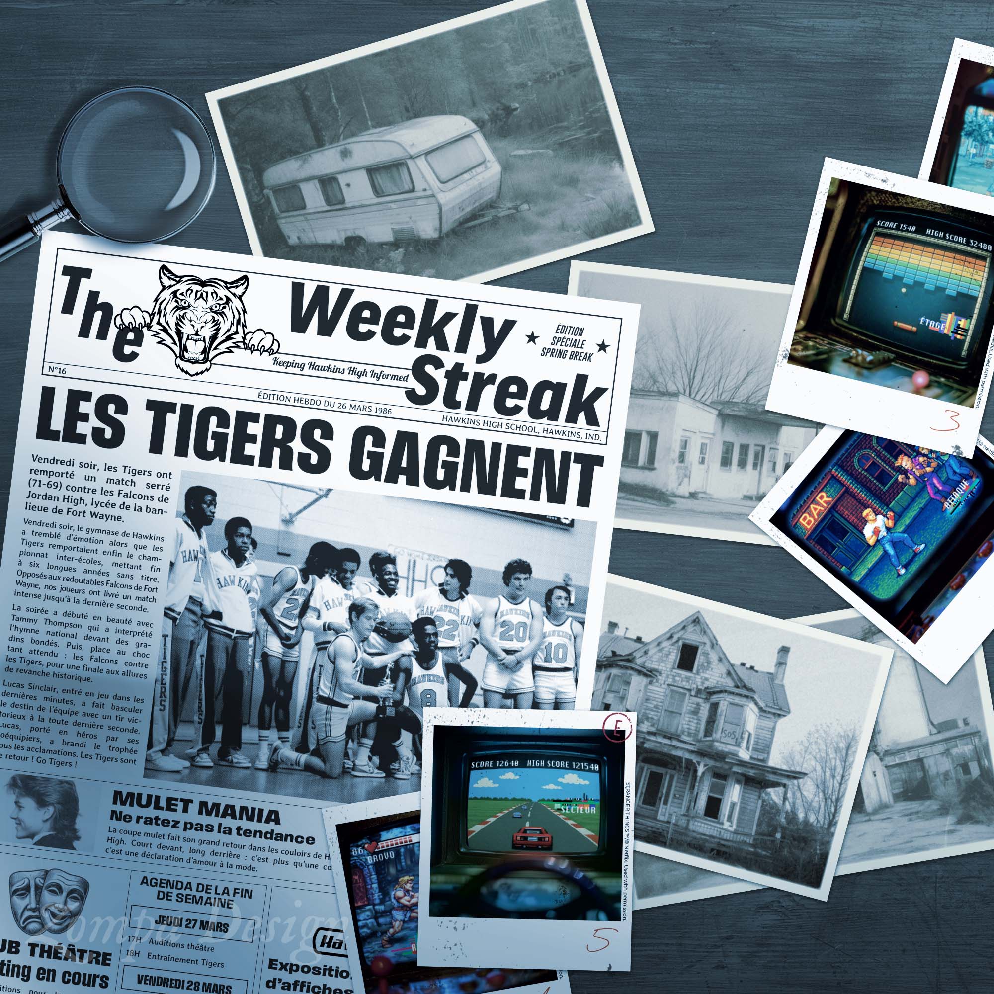 Travailler sur Dossiers Criminels : Stranger Things, l'Ombre de Hawkins a été l’un des projets les plus immersifs que j’aie menés pour Platonia Games, avec qui je collabore depuis plus de trois ans. Pour restituer l’ambiance si particulière de la série, j’ai dû mener ma propre enquête : éplucher les ressources visuelles mises à disposition par Netflix, revoir minutieusement des séquences de la série pour capter la cohérence des lieux et me plonger dans les codes visuels des années 80... Jusqu’à étudier des yearbooks américains authentiques et revisiter l’esthétique Amiga pour créer des écrans en pixel art crédibles (notamment un Walkman qui permet aux joueurs d'écouter plusieurs audios nécessaires à l'enquête).